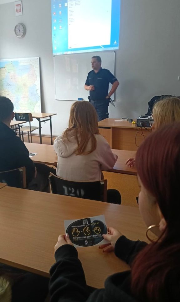 Handel ludźmi to poważne przestępstwo przeciwko wolności człowieka. Funkcjonariusze przedstawili, na czym polega proceder, jak działają grupy przestępcze oraz jakie sygnały ostrzegawcze powinny wzbudzić niepokój. Zwrócili uwagę, że ofiary często są zwabiane obietnicą atrakcyjnej pracy lub lepszych zarobków, a w rzeczywistości trafiają w sytuacje wyzysku.