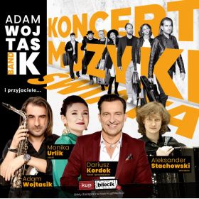 bilety: Koncert Muzyki Świata - Adam Wojtasik Band i Przyjaciele Jedziemy do Was z nowym repertuarem Koncertu Muzyki Świata ! Naszą muzyczną podróż zaczynamy w Łodzi by następnie zabrać Państwa muzycznie do Stanów Zjednoczonych, Wielkiej Brytanii, Irlandii, Hiszpanii, Francji, Włoch ,oczywiście Polski etc. Wyjątkowe aranżacje Adama Wojtasika perfekcyjnie wykonane przez zespół "Adam Wojtasik Band" Koncert poprowadzi popularny aktor Dariusz Kordek. Nie dosyć ,że poprowadzi to także w nim zaśpiewa !!! Do tego wszystkiego niezrównany, wyjątkowo energiczny głos Moniki Urlik. Zwyciężczyni między innymi" Szansy na Sukces" pół finalistka The Voice of Poland zaśpiewa całą gamę znanych i lubianych przebojów estradowych. Nasza Muzyczna podróż dookoła świata zapowiada się genialnie i wyjątkowo !!! Zespół Adam Wojtasik Band w składzie : Koncert Muzyki Świata - Adam Wojtasik Band i Przyjaciele artyści: Zespół Adam Wojtasik BandJedziemy do Was z nowym repertuarem Koncertu Muzyki Świata! Naszą muzyczną podróż zaczynamy w Łodzi by następnie zabrać Państwa muzycznie do Stanów Zjednoczonych, Wielkiej Brytanii, Irlandii, Hiszpanii, Francji, Włoch, oczywiście Polski etc.:)Wyjątkowe aranżacje Adama Wojtasika perfekcyjnie wykonane przez zespół „Adam Wojtasik Band” Koncert poprowadzi popularny aktor Dariusz Kordek. Nie dosyć, że poprowadzi to także w nim zaśpiewa !!! Do tego wszystkiego niezrównany, wyjątkowo energiczny głos Moniki Urlik. Zwyciężczyni między innymi„ Szansy na Sukces” pół finalistka The Voice of Poland zaśpiewa całą gamę znanych i lubianych przebojów estradowych. Nasza Muzyczna podróż dookoła świata zapowiada się genialnie i wyjątkowo! Bilety do nabycia na: KupBilecik.pl |